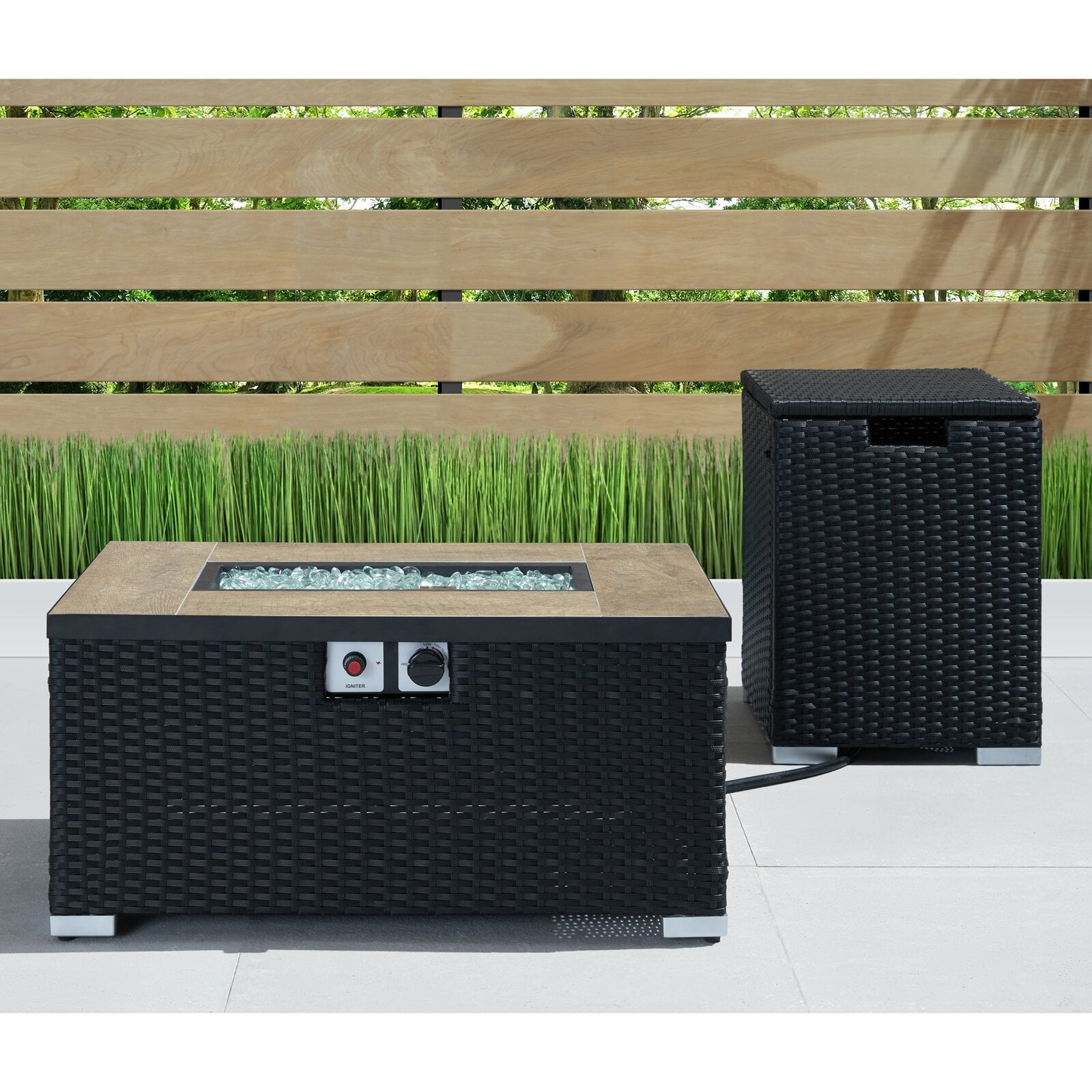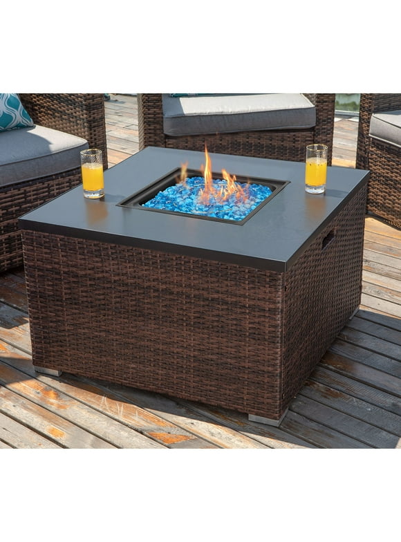 4744-in W 55000-BTU Brown Aluminum Propane Gas Fire Pit Table. For pricing and availability. Endless Summer 30 Inch Square 30000 BTU LP Gas Outdoor Fire Pit Table with Handcrafted Mantel Fire Rocks and Protective Cover Black.